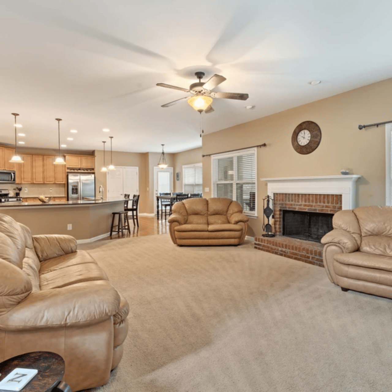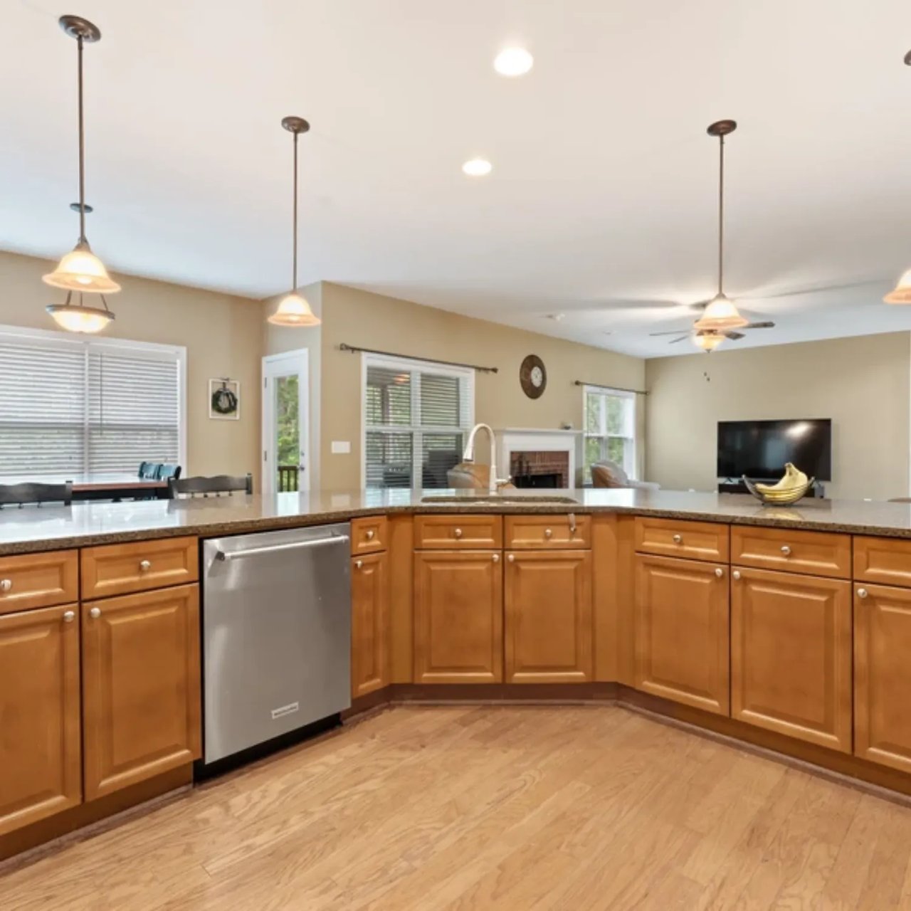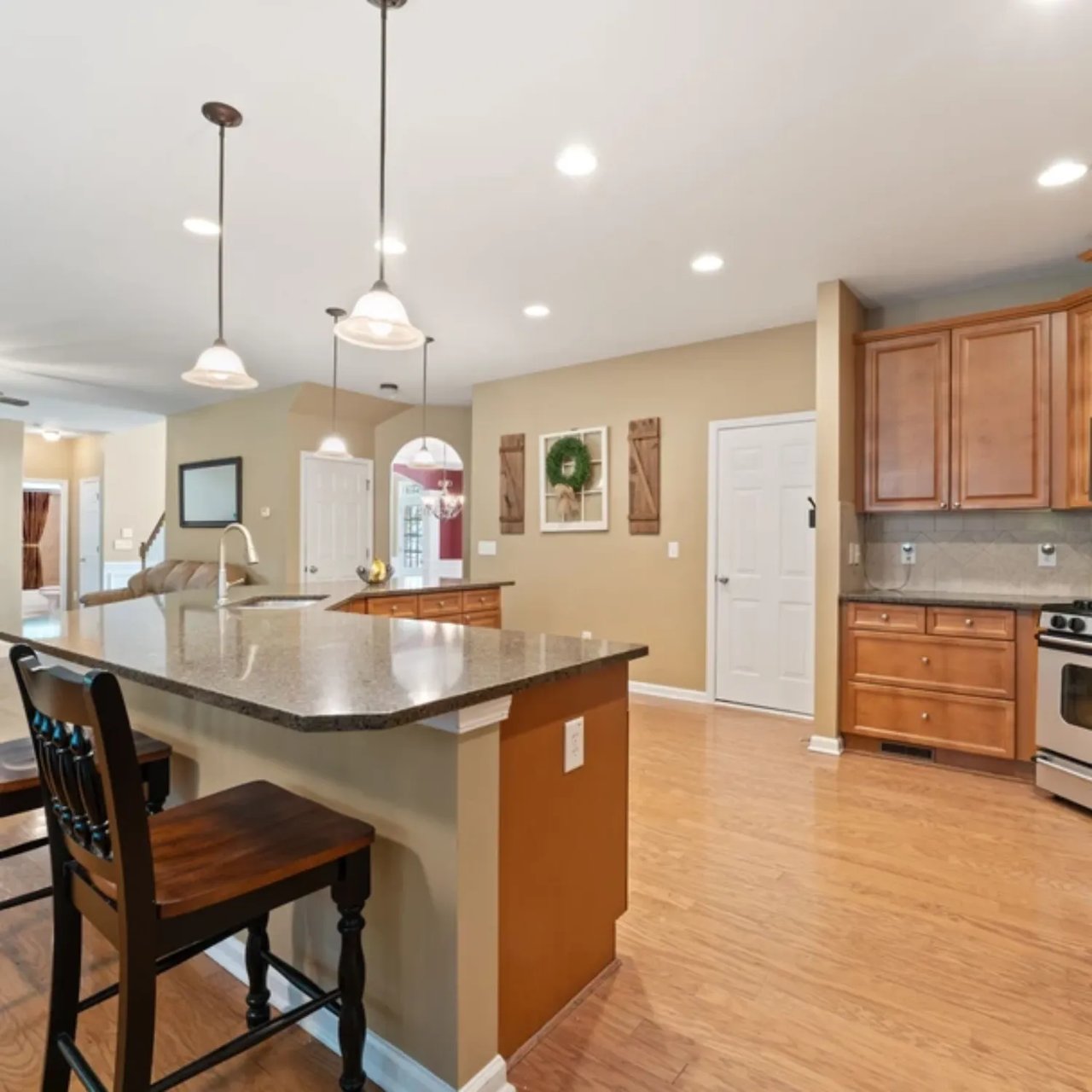 As you enter through the inviting front porch, a two-story foyer greets you with warmth and elegance, setting the tone for a home filled with love, laughter, and life’s most treasured moments. Sunlight pours into the living spaces through double-pane insulated windows, dancing across rich hardwood floors and highlighting the heart of the home—a cozy fireside family room and a chef’s kitchen made for Sunday pancakes and midnight snacks alike.