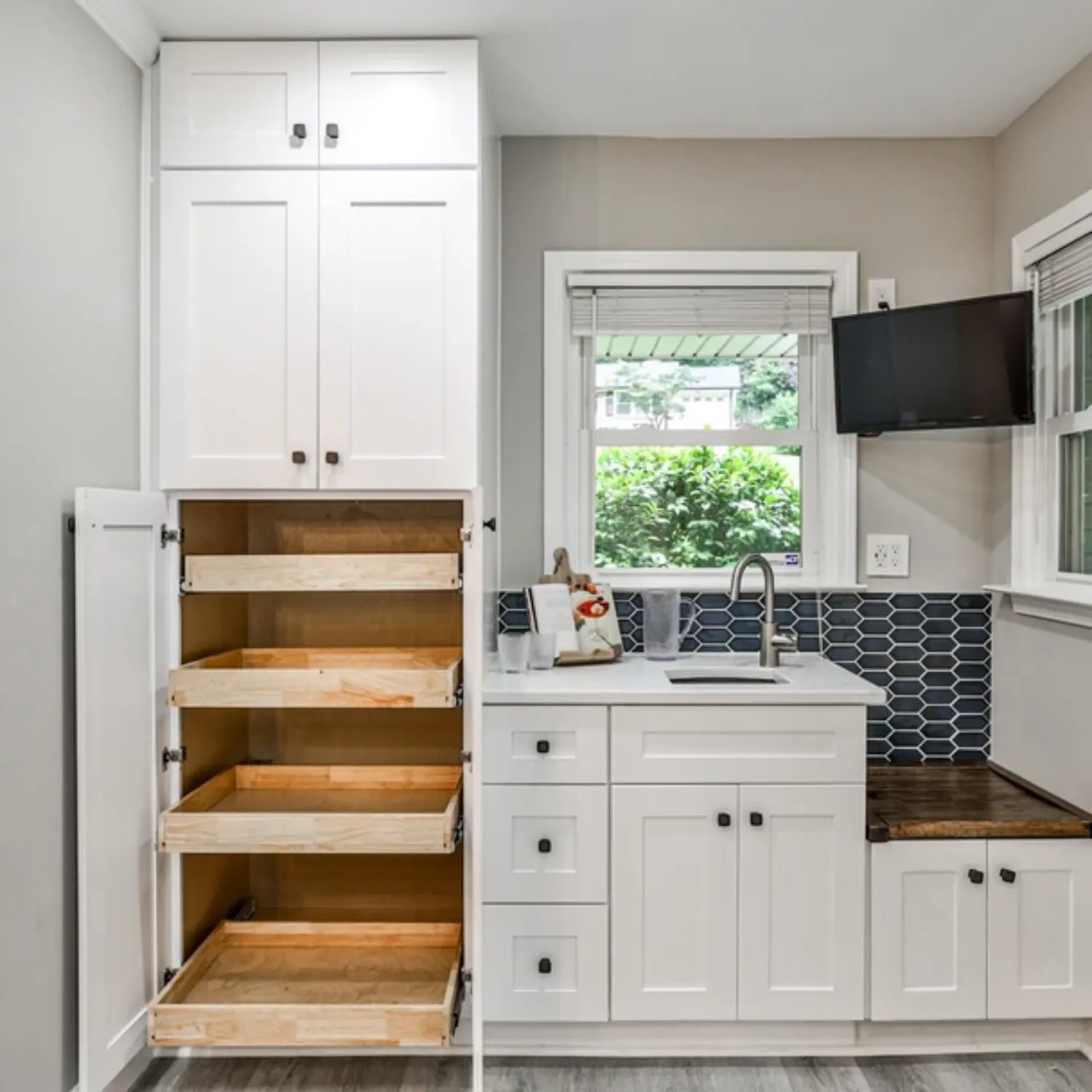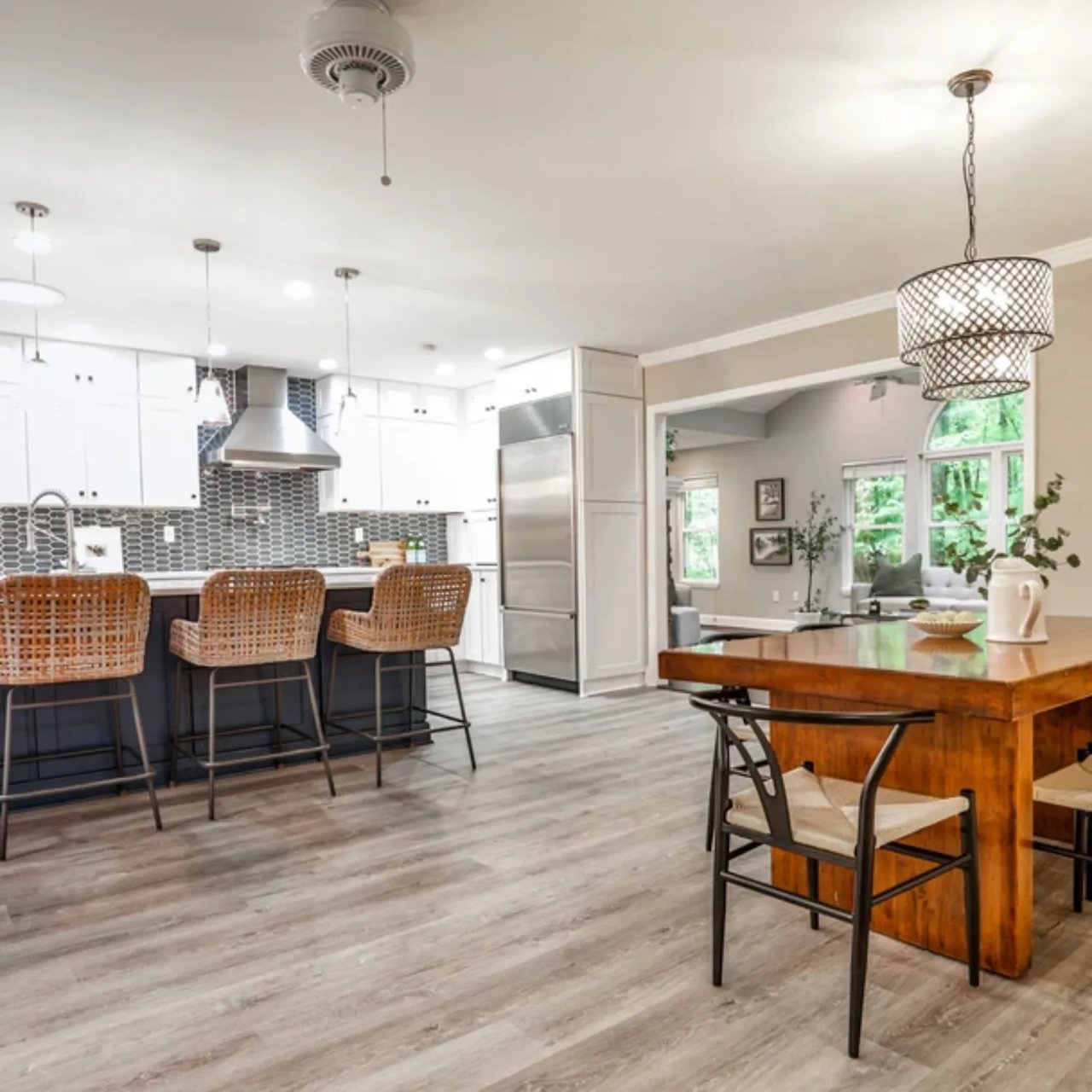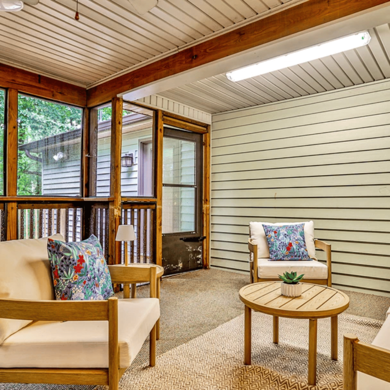 The kitchen flows seamlessly into the vaulted great room and out to a screened porch and elevated wood deck, giving you an indoor-outdoor lifestyle that feels like you're living in a treehouse—right in the city.