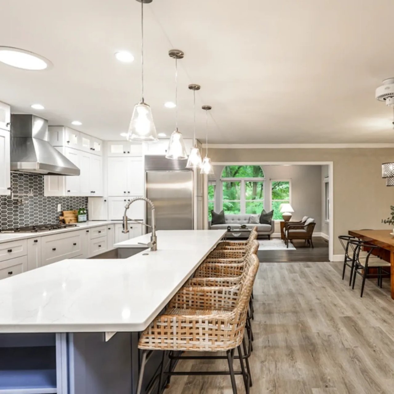 The heartbeat of the home is the chef-inspired kitchen. From the Sub-Zero refrigerator and double ovens to the stone countertops, gas cooktop, and expansive island, this kitchen was made for entertaining. Whether it’s Sunday brunch or Friday night dinner parties, it effortlessly brings people together.